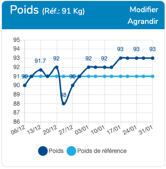 Pour ajuster un poids de référence, rendez-vous sur la fiche de votre patient et son graphique d'évolution du poids. Vous trouverez un bouton "Modifier"