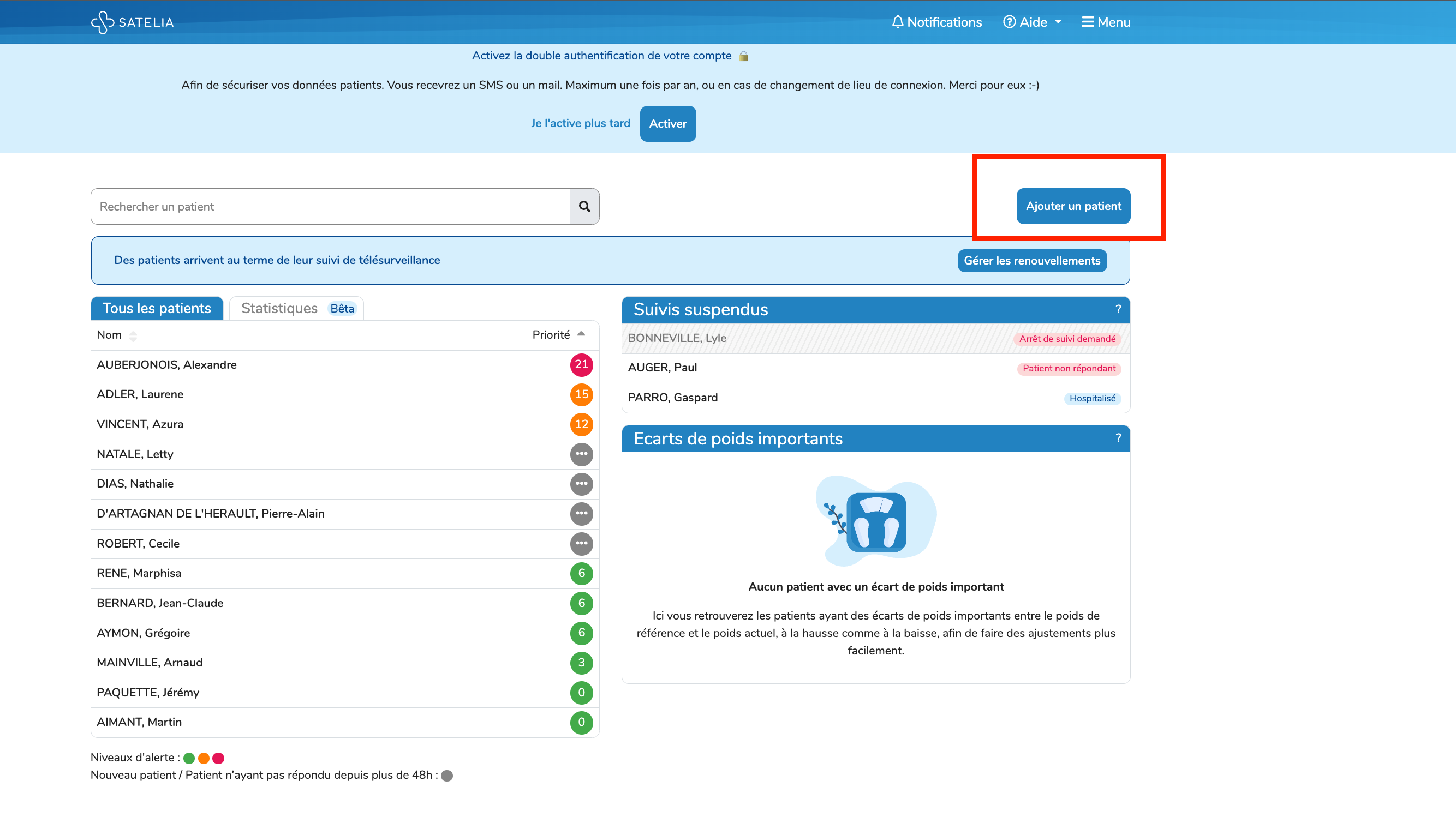 Pour ajouter un patient, cliquez sur "Ajouter un patient" en haut à droite de l'écran.