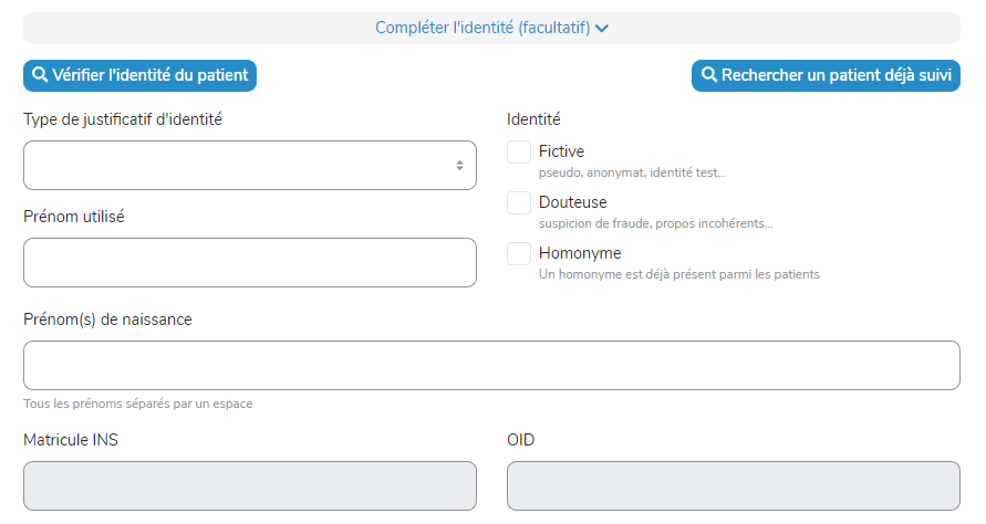 • Plusieurs identités trouvées : Vous êtes invité à compléter les informations, notamment le code INSEE de naissance.