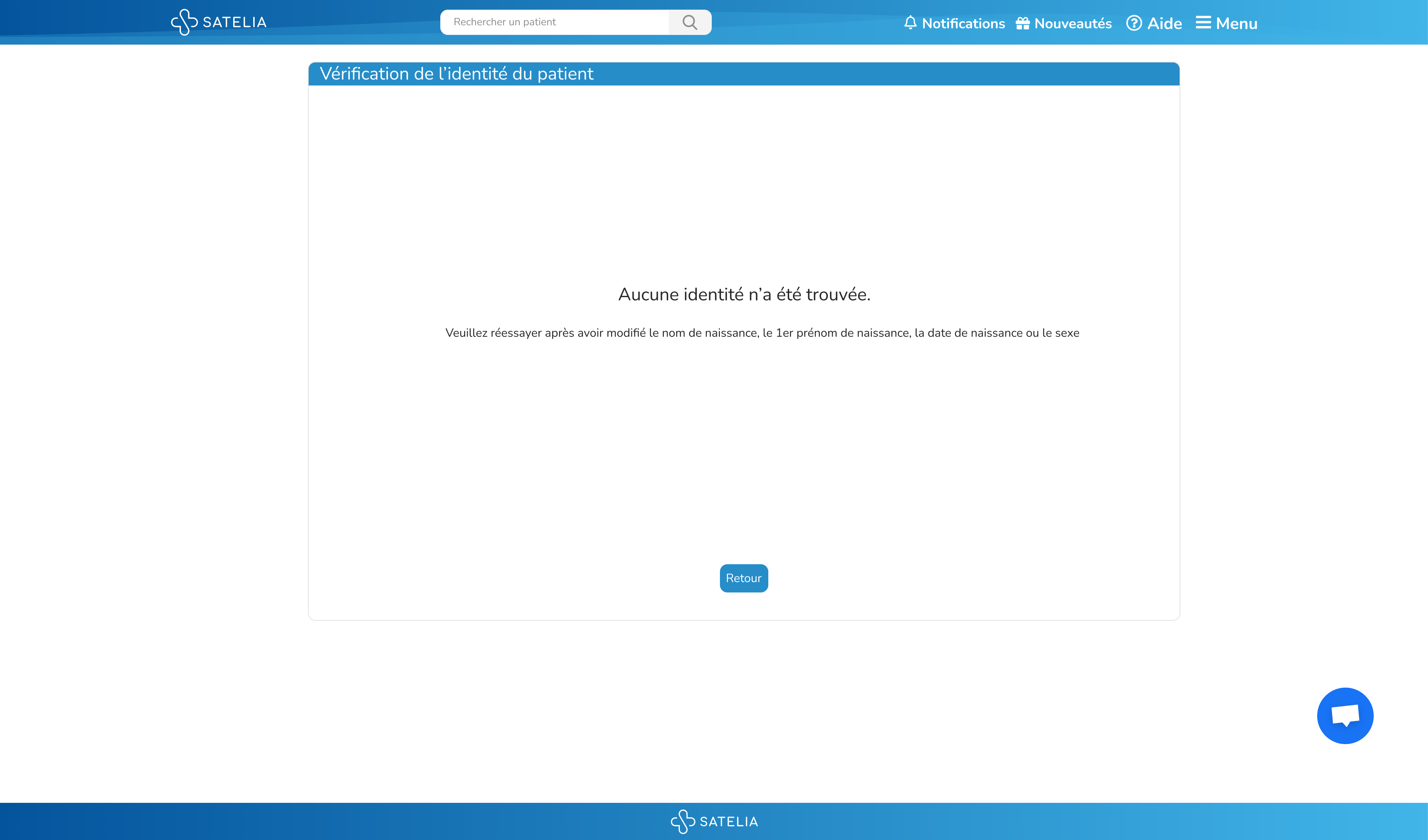 • Aucune identité trouvée : Un message vous invite à vérifier les informations saisies.