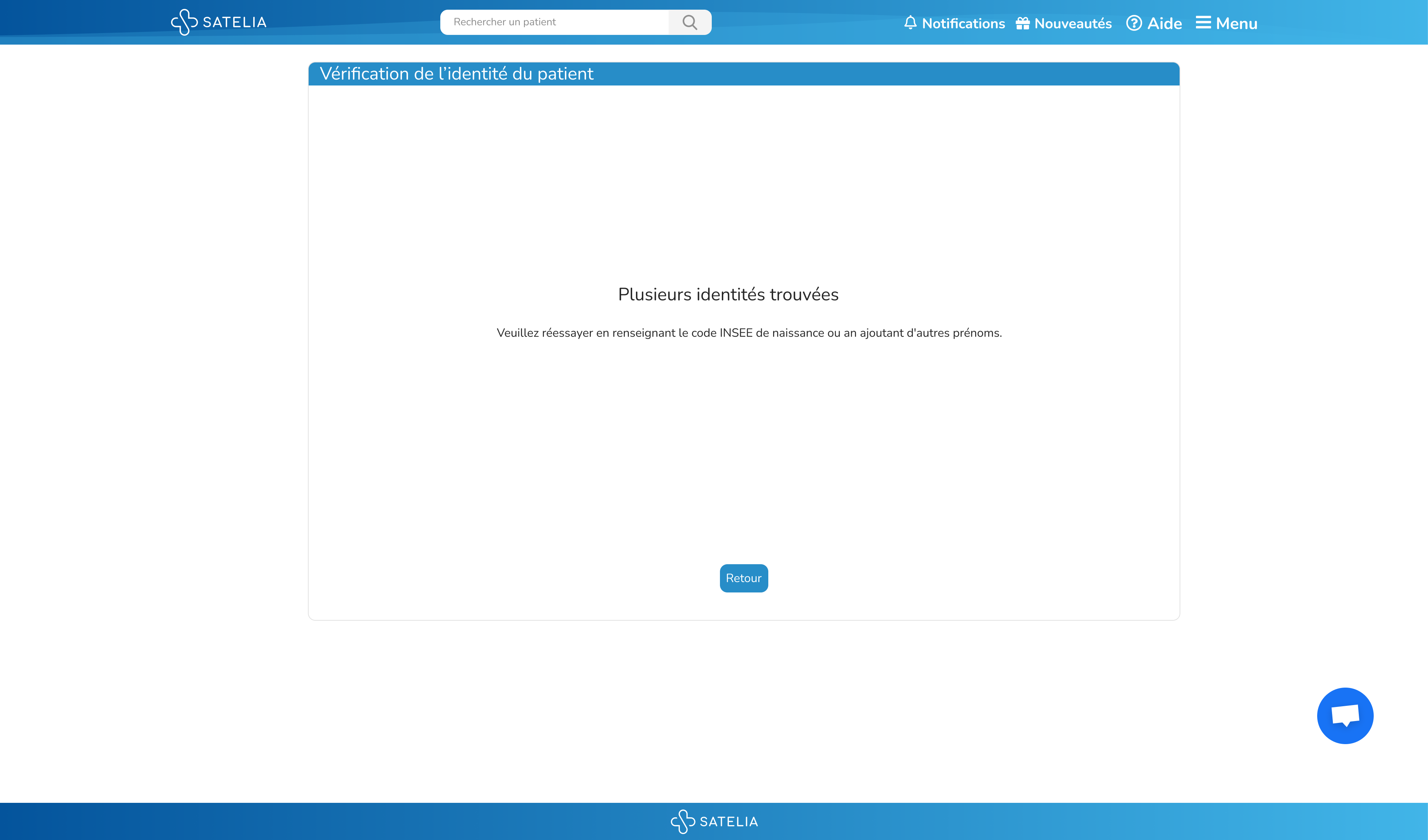 Après avoir cliqué sur "Vérifier l'identité du patient", une fenêtre s'ouvre avec les résultats de l’INSi (Identifiant National de Santé intégré). Trois résultats possibles :