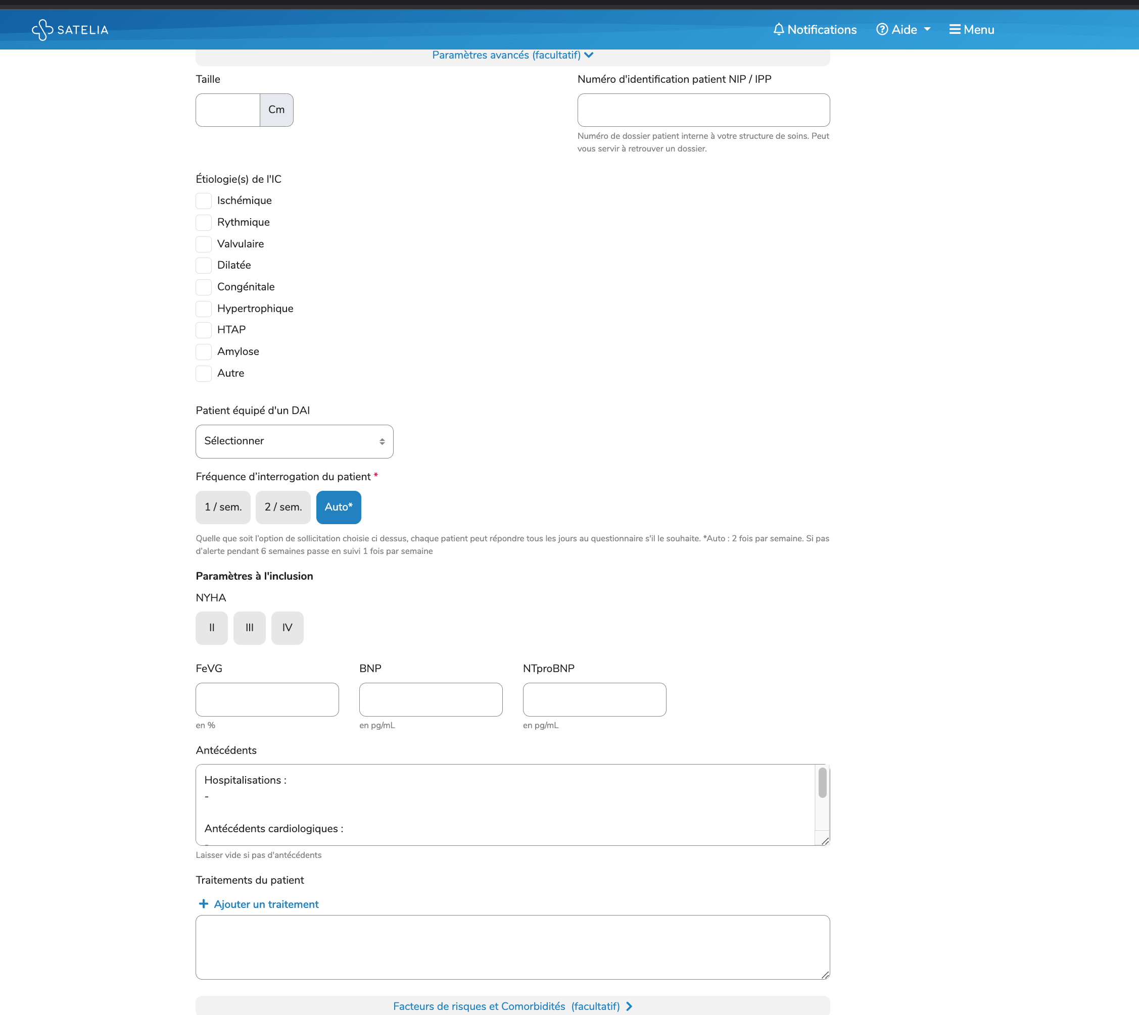 • Utiliser la section “Antécédents” (libre) pour indiquer des informations importantes pour le suivi (objectif thérapeutique, hospitalisations, télécardiologie, etc.).