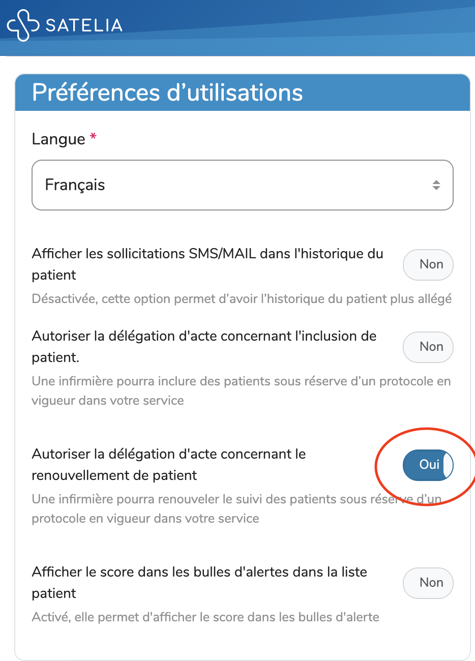 Si vos infirmières disposent d’un accès à Satelia au sein de votre structure, vous pouvez leur donner le droit de renouveler les suivis de vos patients.