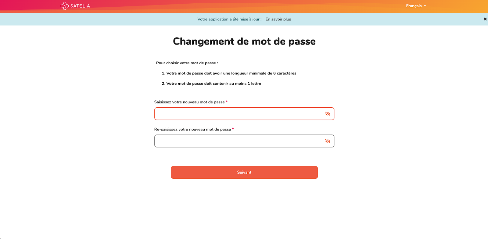 - Une fois votre nouveau mot de passe saisi, cliquez sur "Suivant".