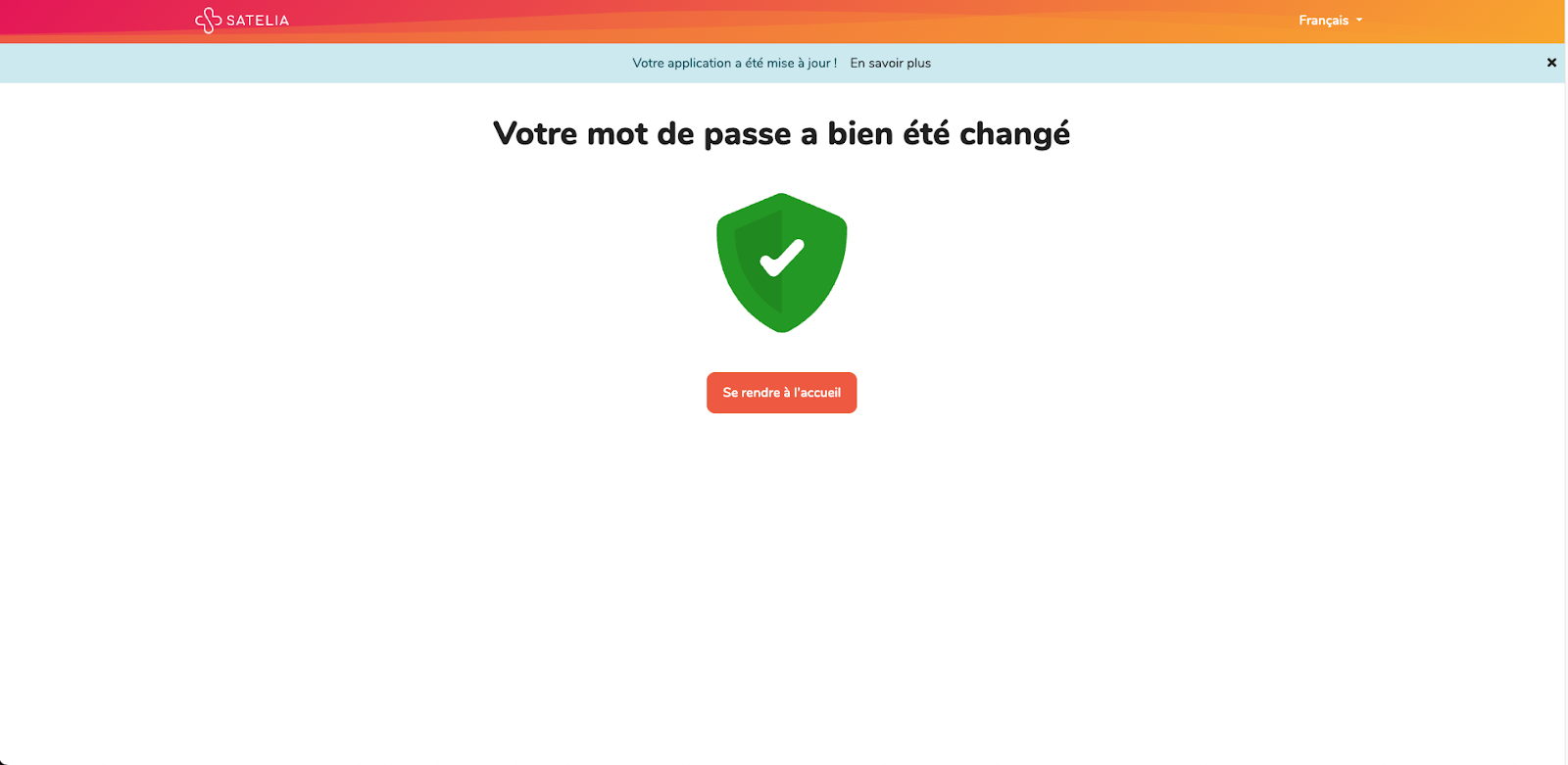- Un message confirmera que votre mot de passe a été changé avec succès. Cliquez sur "Se rendre à l’accueil".